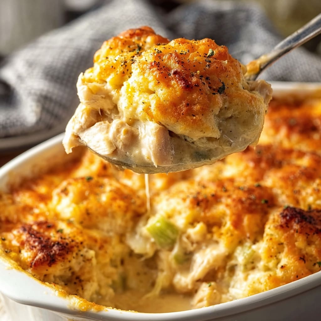 For a Southern-Style Chicken and Dumpling Casserole, enhance the comfort factor by adding ½ teaspoon of poultry seasoning to your filling and incorporating ¼ cup of cornmeal into the dumpling mixture. This creates a more rustic, traditional flavor profile with dumplings that have a slight corn flavor and heartier texture reminiscent of classic Southern cooking.