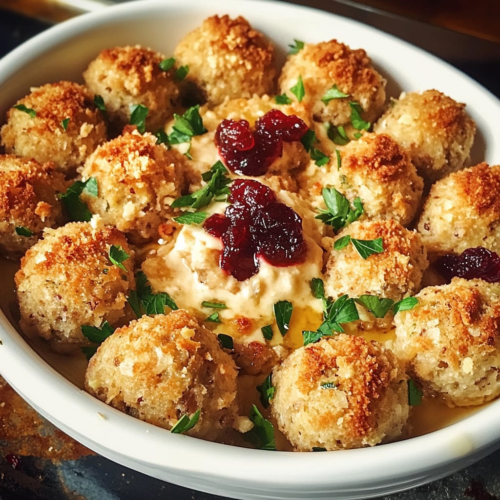 Cranberry Turkey Stuffing Balls – Juicy turkey, savory stuffing, and tart cranberries rolled into irresistible bites. Perfect for holiday feasting!